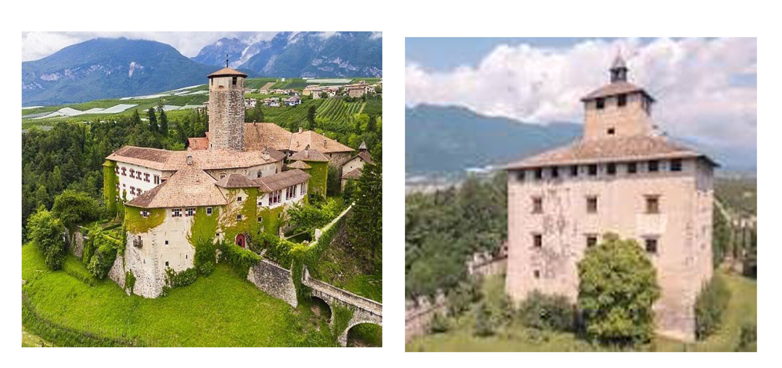 Percorrendo strade interpoderali tra i meleti della val di Non, si visitano l'austero Castel Valer e l'elegante Castel Nanno