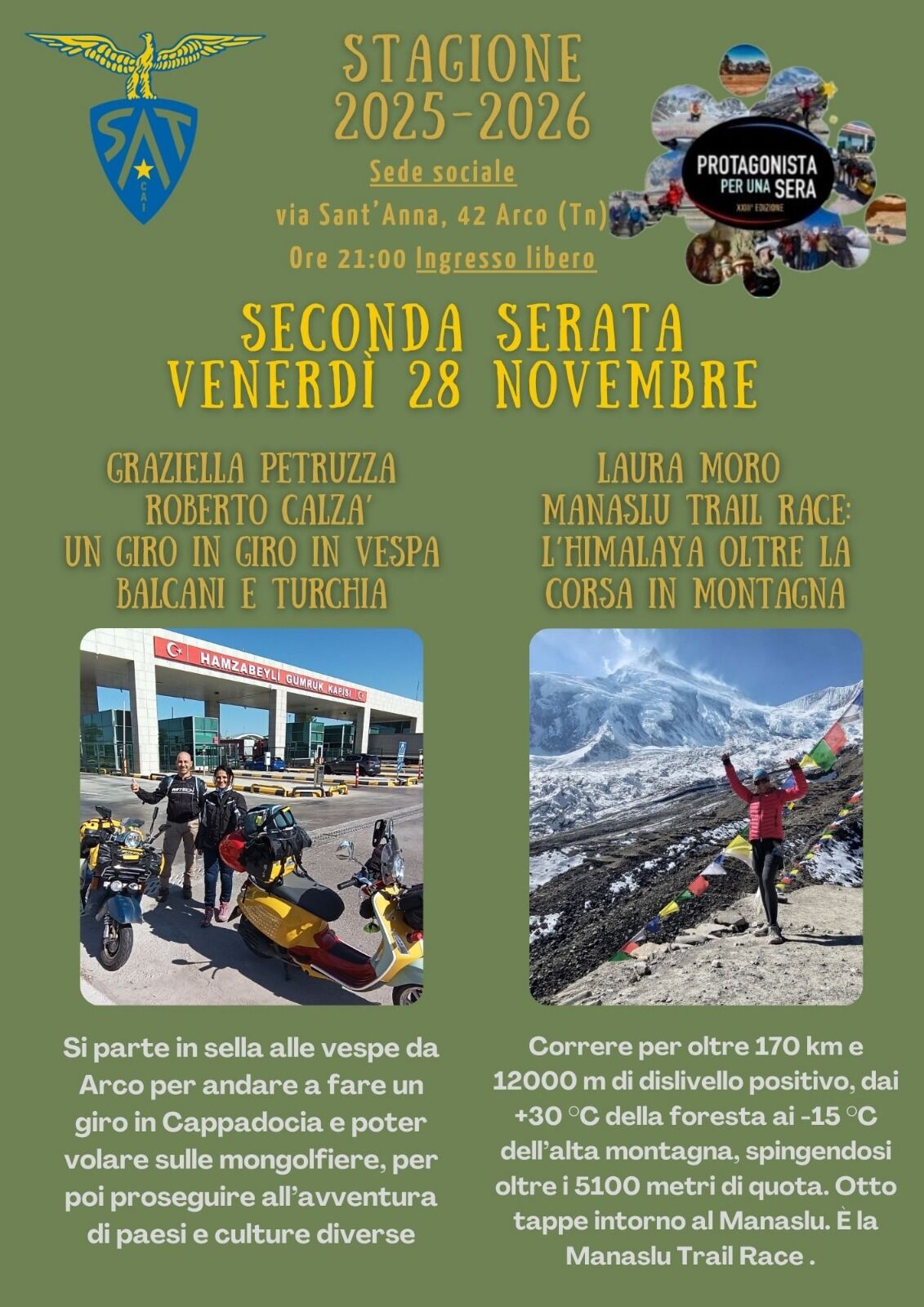 A raccontare i loro viaggi saranno GRAZIELLA PETRUZZA e ROBERTO CALZA' con UN GIRO IN GIRO IN VESPA - BALCANI E TURCHIA e LAURA MORO con MANASLU TRAIL RACE: L'HIMALAYA OLTRE LA CORSA IN MONTAGNA.