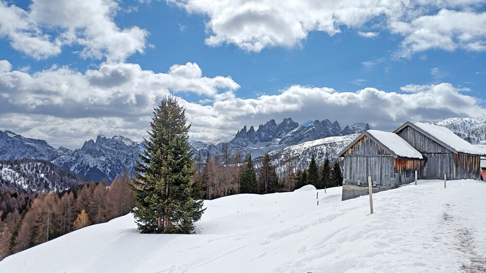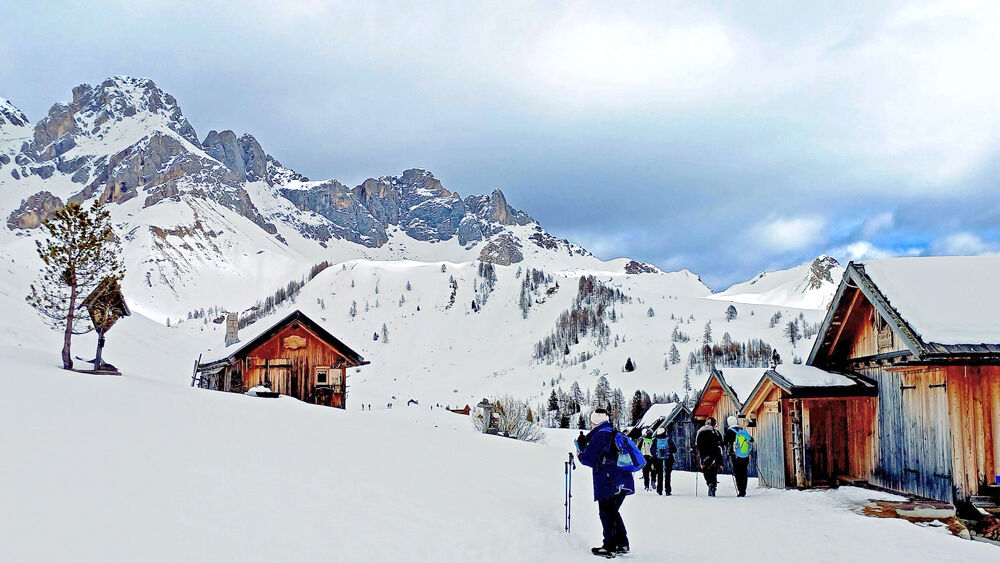 La conca di Fuchiade è uno degli angoli più suggestivi delle Dolomiti e la si raggiunge facilmente da Passo San Pellegrino. In inverno le numerose baite in legno ricoperte di neve, rendono il paesaggio ancor più suggestivo. Uscita spostata al martedì 24 febbraio