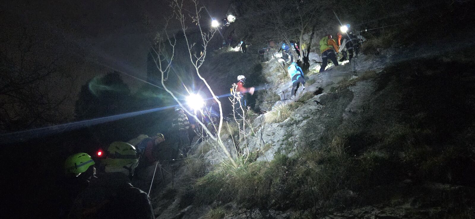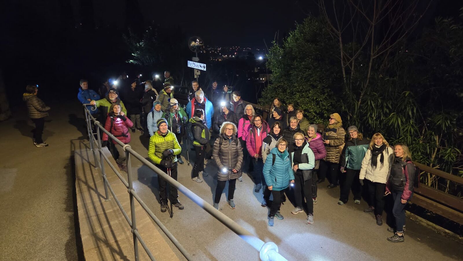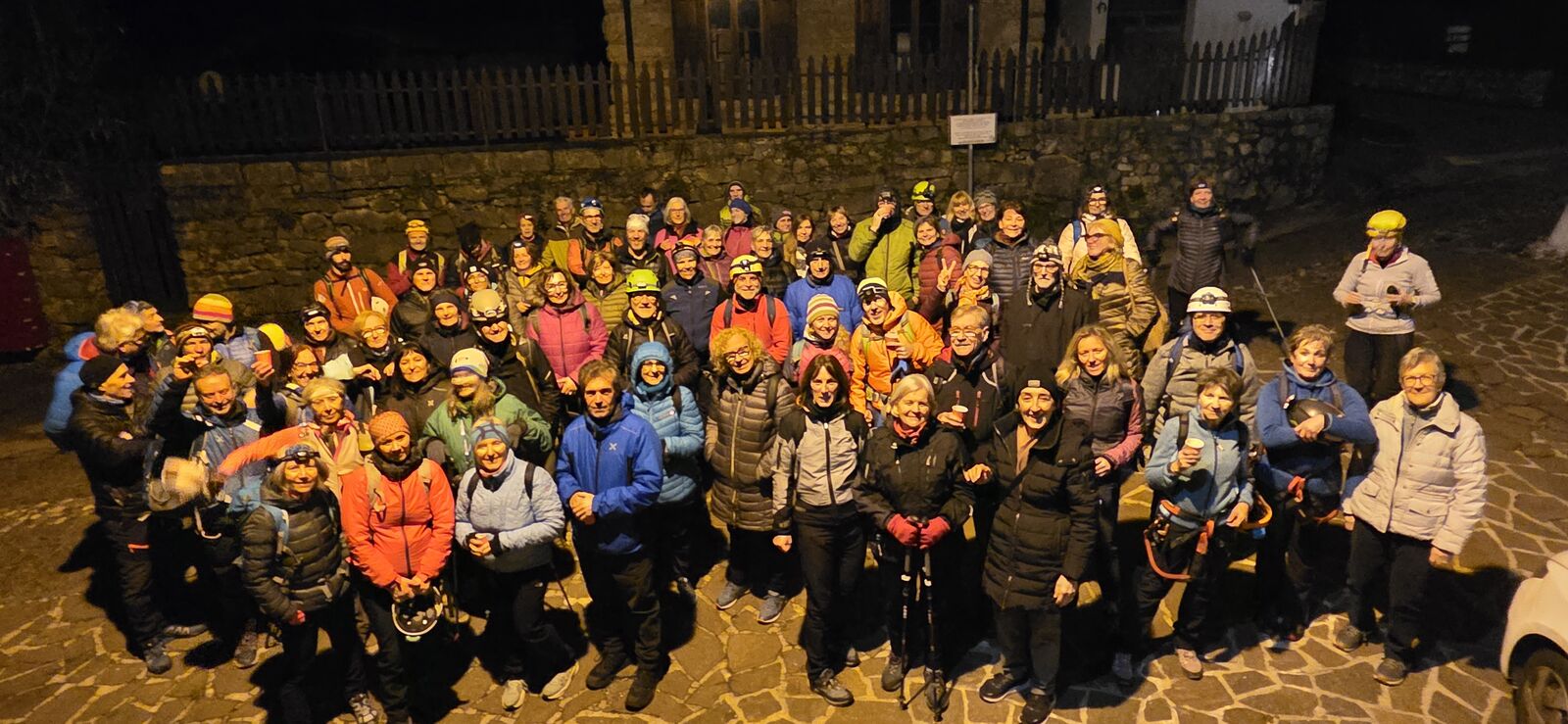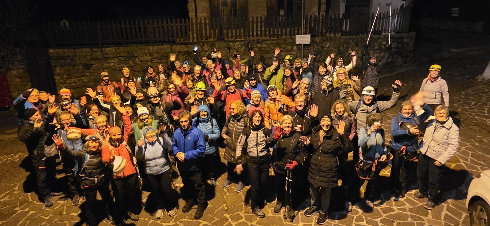 Chi con imbrago e casco, chi con i bastoncini, ma tutti con il frontalino acceso.