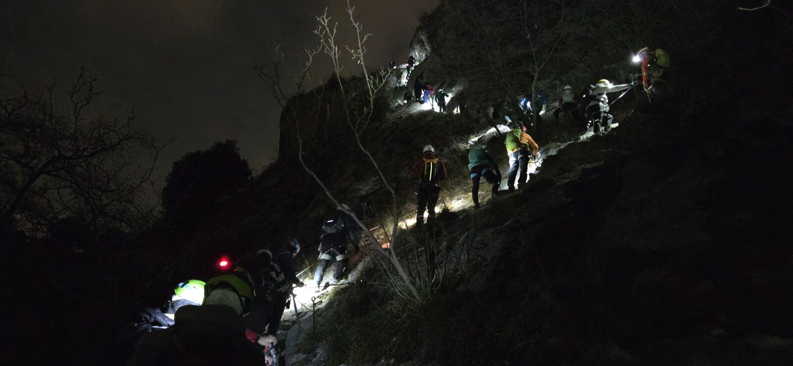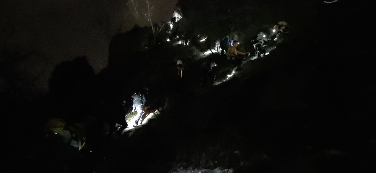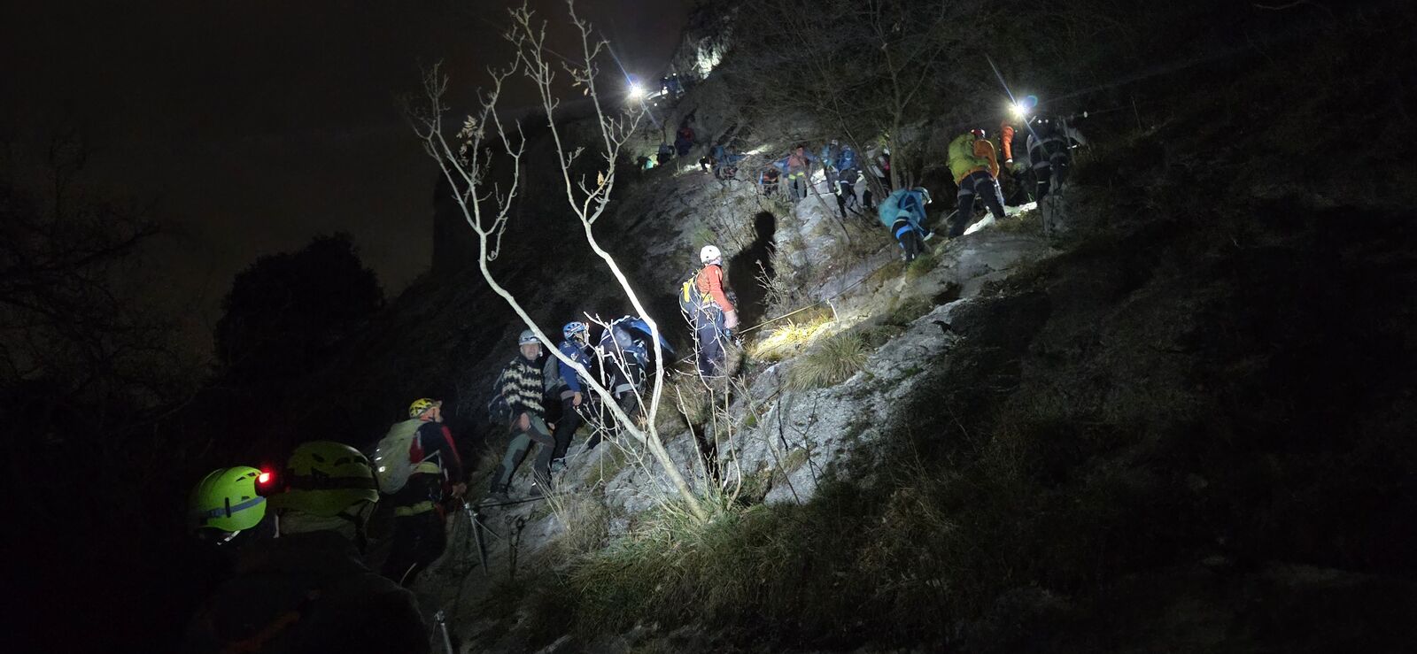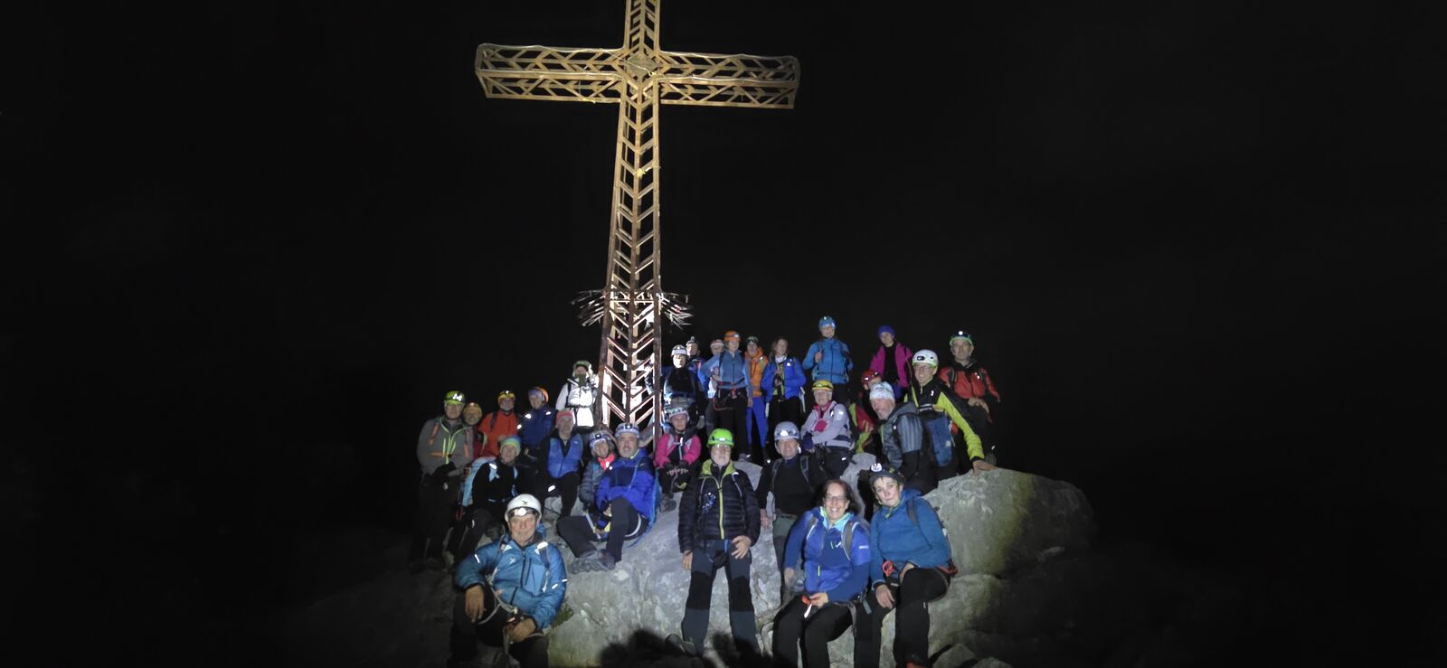 Chi con imbrago e casco, chi con i bastoncini, ma tutti con il frontalino acceso.