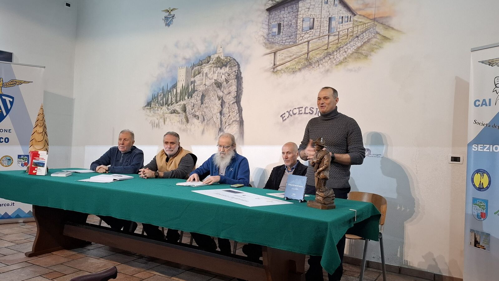 Nel corso della serata è stato più volte ricordato il suo forte legame con la montagna, vissuto in tutte le sue sfumature: dall'escursionismo all’alpinismo, dalla ricerca alla riflessione poetica. La sua sensibilità, semplicità e umiltà — unite a una contagiosa voglia di vivere — sono state le qualità che lo hanno sempre contraddistinto nell’arco della sua esistenza. Una vita trascorsa ricoprendo incarichi di prestigio e continuando a dipingere e a scrivere novelle, racconti e poesie, senza mai però dimenticare Arco. Anche il suo legame con la sezione non è mai venuto meno, tanto che nel 2024 ha ricevuto il riconoscimento per i 70 anni di appartenenza.