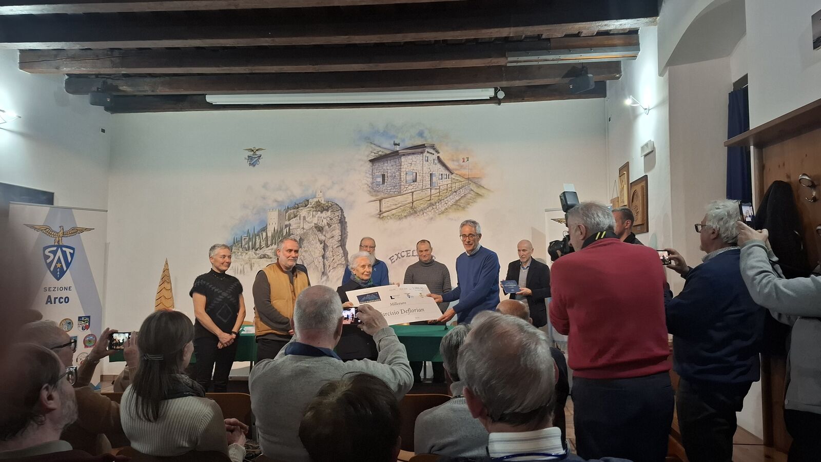 Una sala gremita e partecipe ha fatto da cornice alla cerimonia in memoria di Giancarlo Lutteri, affettuosamente conosciuto con il soprannome di Galetina. L’iniziativa, nata dalla volontà della famiglia, è stata organizzata in collaborazione con l’Associazione Giacomo Floriani, la Sezione SAT di Arco e con il patrocinio del Comune di Arco — un segno tangibile del profondo legame di Giancarlo con la città, i satini e la comunità arcense.