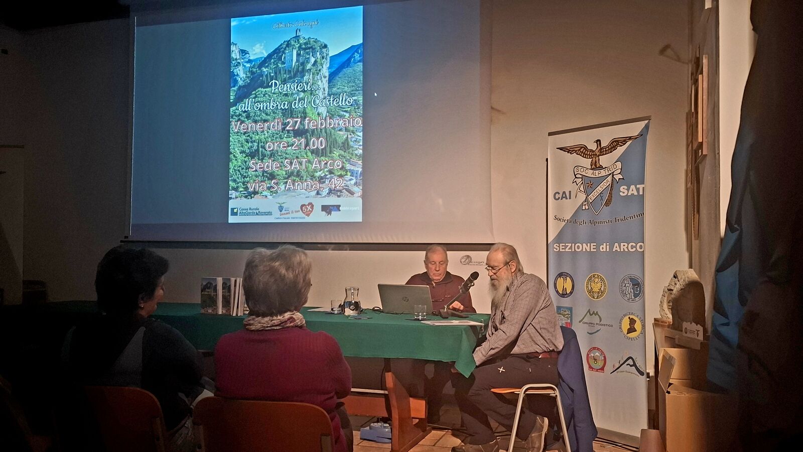Alessandro Parisi, dell’Associazione Giacomo Parisi, ha presentato “Pensieri … all’ombra del Castello” non solo come una biografia poetica scritta in dialetto che racchiude 60 anni, una vita di pensieri, sensazioni, sentimenti, ma anche come una biografia umana perché attraverso le poesie Gilberto rivendica e ribadisce i valori più autentici della vita con tutte le sue sfaccettature emozionali. In sede, che per Gilberto, è casa che profuma di amicizia, ha letto con trasporto e commozione alcuni pensieri che hanno dato la possibilità di ripensare alla montagna come a una scuola di vita che porta con sé fatiche ma anche amici veri e sincere. Amicizie di lungo tempo e oltre il tempo.