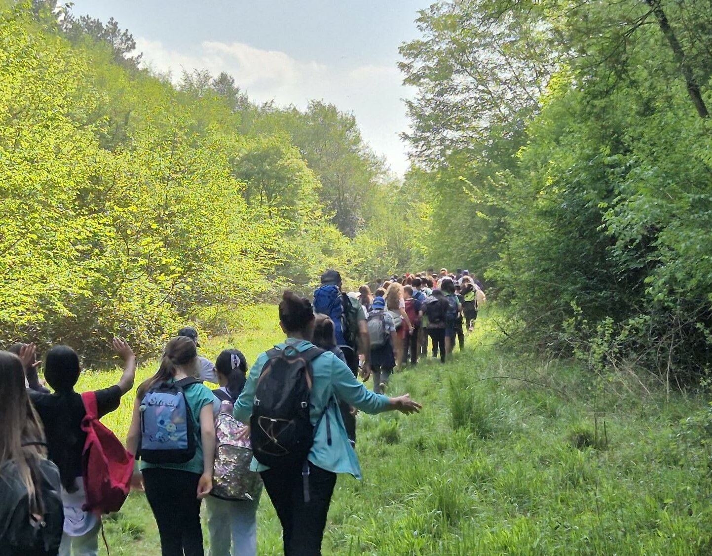 Partendo dai diversi plessi del territorio — Massone, Bolognano, Romarzollo e Arco — i ragazzi si sono ritrovati nel grande prato adiacente alla casa di Bosco Caproni. Qui, l’escursione si è trasformata in un’esperienza di socializzazione profonda: suddivisi in gruppi misti e identificati da braccialetti colorati, gli studenti hanno interagito e collaborato, trasformando il sentiero in un luogo di incontro e nuove amicizie.